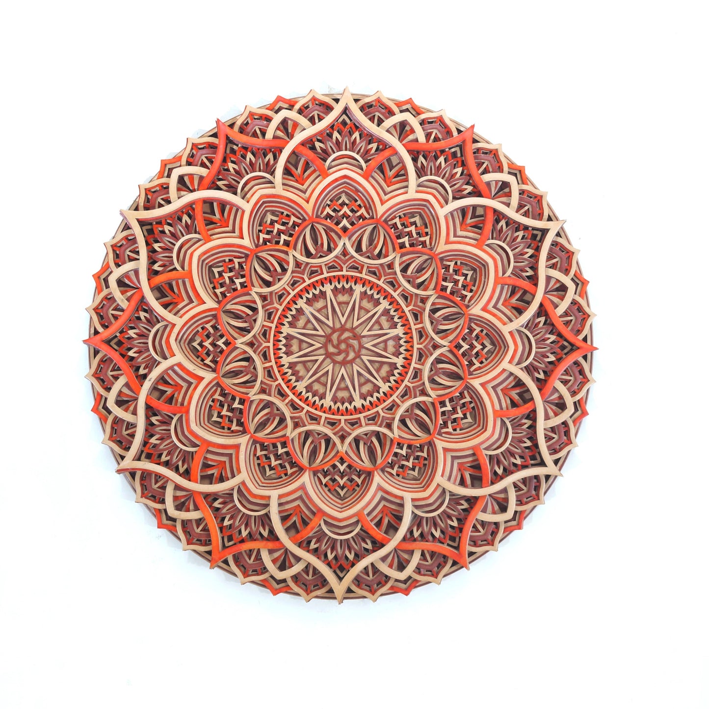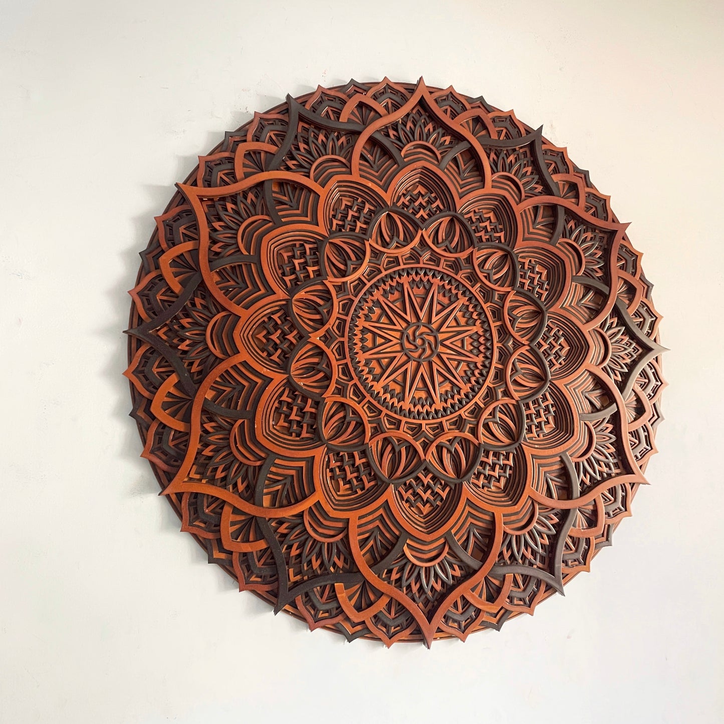 Wooden mandala wall art is made with multiple wooden layers to provide depth and uniqueness so that you can get the best view and can see the detail of our mandala art. Each layer thickness is 2.5mm and are available in different Sizes and different color option to perfectly match your interior.